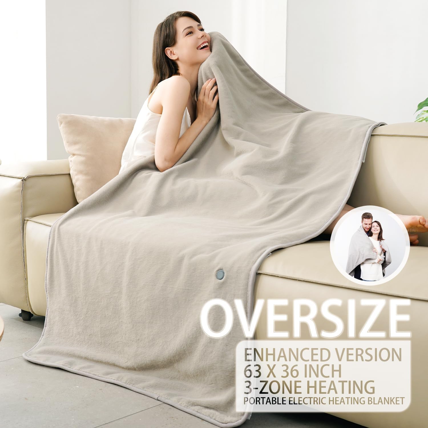 Portable Heated Blanket with Battery Pack,Infared Heating Cordless Heated Blanket Upgrade Large Size Portable USB Battery Powered Home Camping