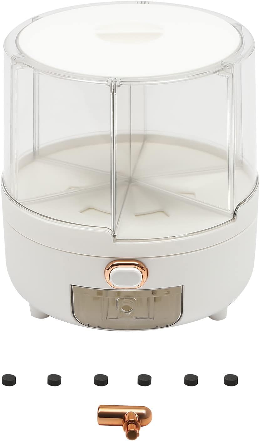 Large Capacity: This grain dispenser has 6 storage compartments, which has a large capacity and can hold about 4.5kg/9.92lbs of dry food.