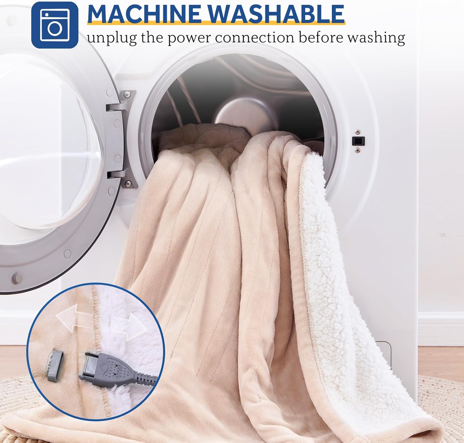 💎【MACHINE WASHABLE】 Sealy heated plush sherpa throw is machine washable with slow agitation and low spin speed, please disconnect the controller and power cable before washing, please remember DO NOT dry clean, DO NOT bleach, and don’t use it if wet. Please read the user manual carefully.