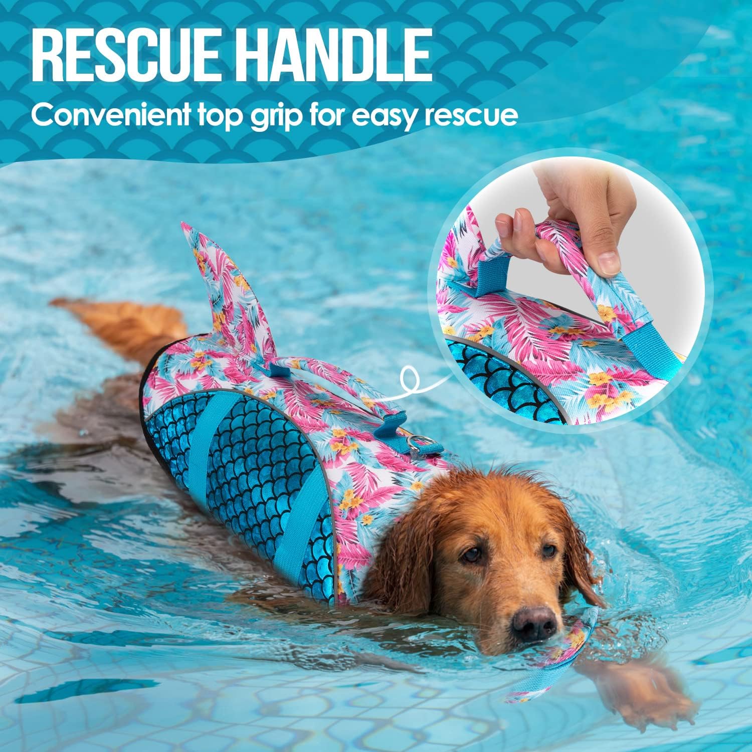 SlowTon Dog Life Jacket, Shark-Shaped Dog Life Vest with High Buoyancy and Tear-Resistant Rescue Handle, Suitable for Small, Medium and Large Dogs for Swimming, Boating, Pool(Blue XL)
