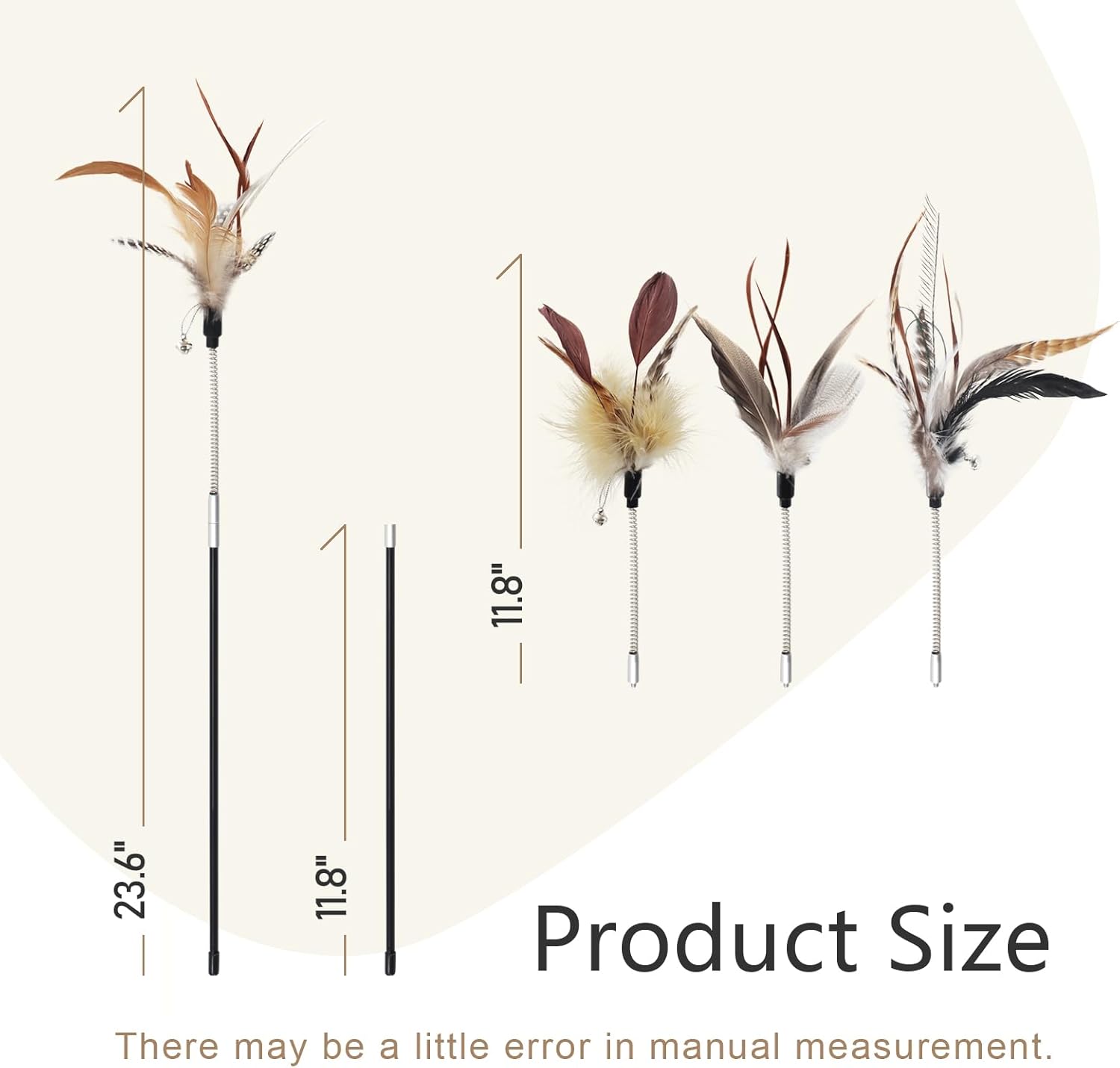[SPRING FEATHER REPLACEMENT]: This cat teaser toy with diverse natural feathers, easy to replace, just screw the replacement feather into the nut on the top of the cat teaser stick, simply and durable. With the fully extended cat wand toy is long enough (23.6 inches), it will bring more play options and fun to cats
