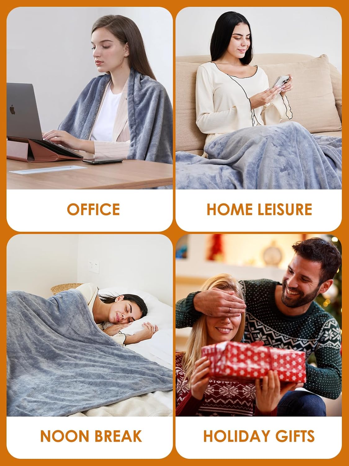 This heated blanket is so nice during the winter season. I like it because it can be a blanket and a shawl. It has eight heating zones on the back and front. It has three heating zones. Even my kids love it.