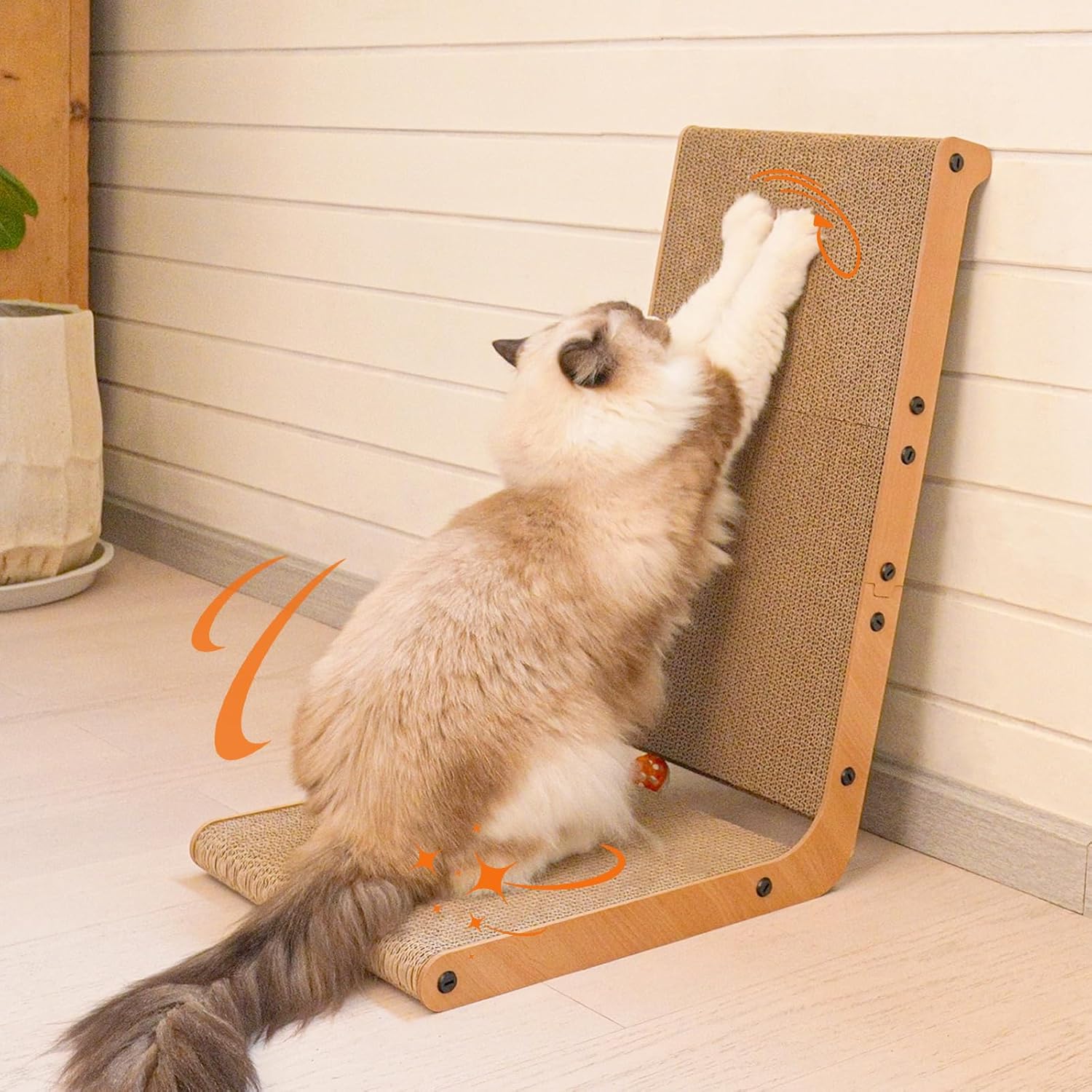 Unique Design: 105° tilt angle, 15° more than the vertical L cat scratching board, one more degree of thoughtfulness. It protects the cat’s spine from compression and makes it play more voluntarily.