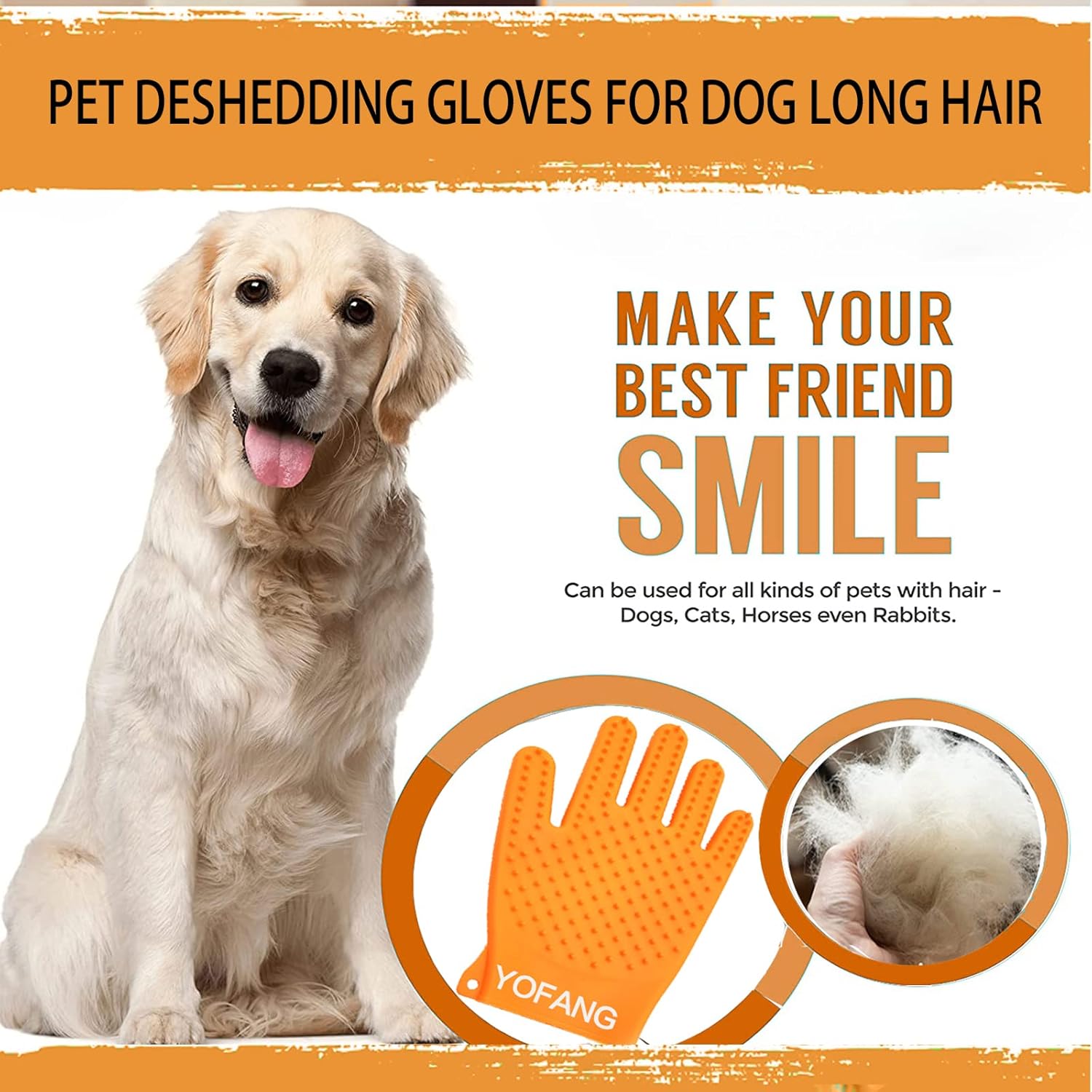 YOFANG 4-in-1 Pet Grooming Gloves for Washing and Hair Removal,Gentle Double-Side Brush Gloves Effective in Removing Pet Hair and Stain for Dog &Cat & Horse,2 Piece Both Hands are Use (Orange)