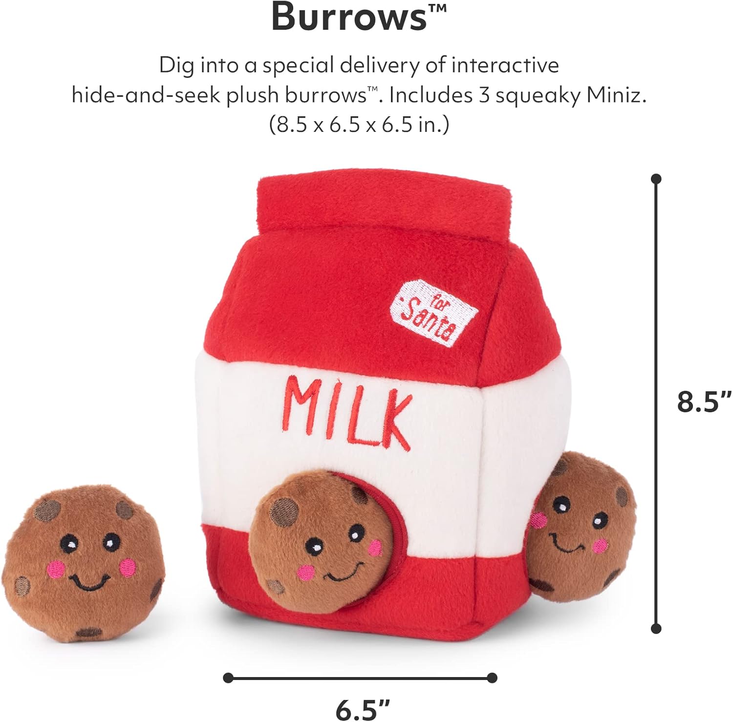 ZippyPaws Burrow Christmas Dog Toy – Plush Squeaky Holiday Dog Gifts for Small & Medium Puppy Dogs, Interactive Hide & Seek Stocking Stuffers for Pets – Santa’s Milk & Cookies